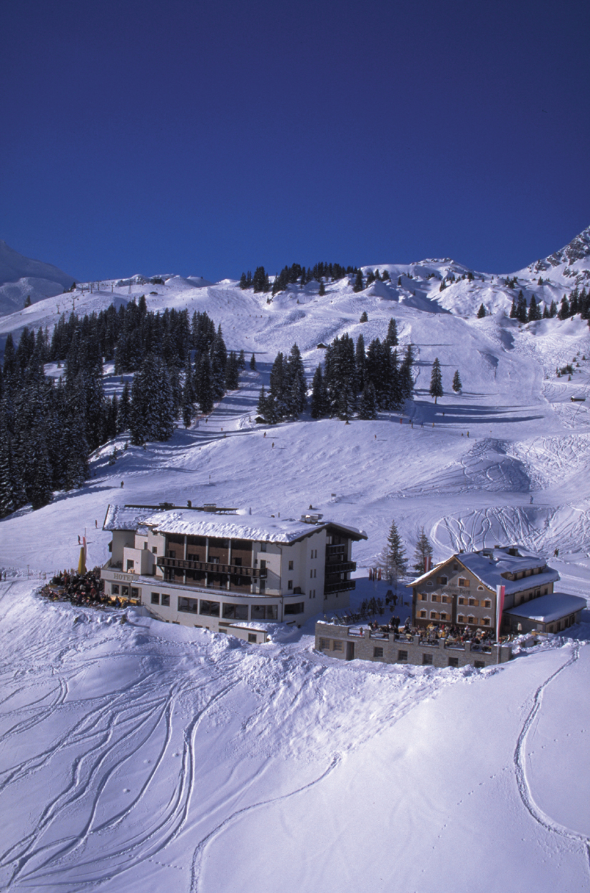 Neben dem einfachen Schutzhaus erwächst eines der modernsten Hotels seiner Zeit: mit elektrischem Licht, fließendem Wasser und Zentralheizung. Das Hotel Goldener Berg wird zum Treffpunkt von Sportlern, Künstlern und Visionären aus aller Welt. Tagsüber bewegen sie sich auf den Pisten und kommen abends im einstigen Gemüsekeller in der ersten Kellerbar, der sogenannten „Skihölle“, zusammen.